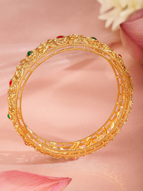 gold-plated bangles, each has stone-studded details, secured with slip-on closure
