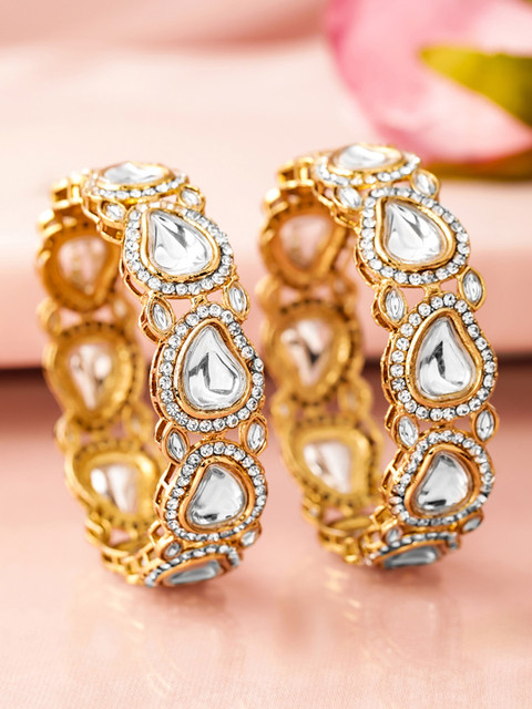 Gold-toned, 18K gold-plated bangles, each has white stone-studded details, secured with slip-on closure