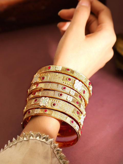 18k Gold-plated bangles, each has American diamond-studded details