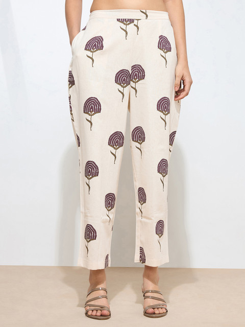 Saanjh Floral Printed Pure Cotton Top With Trouser Co-Ords