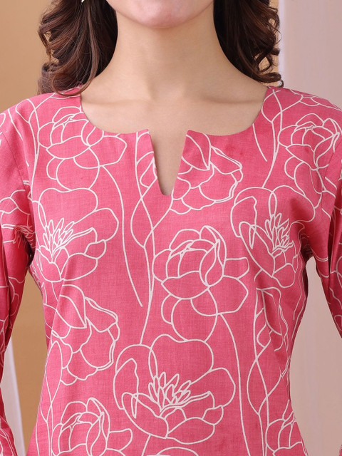 Pink & white printed tunic, has round neck, three quarter sleeves, slip on closure