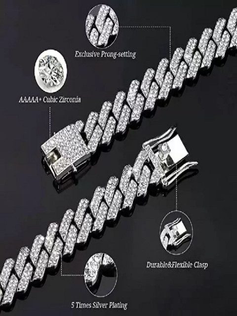 Safisha Unisex Silver-Plated Cubic Zirconia Studded Minimal Chain
