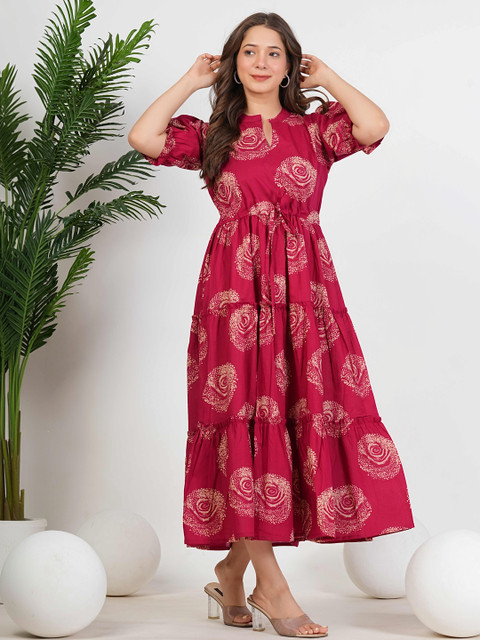This womens ankle-length Anarkali cotton dress is a perfect blend of comfort and elegance. Made from soft and breathable cotton fabric, it is ideal for everyday wear or festive occasions. The flared Anarkali design gives it a graceful and flowy look. It features a stylish neckline and full length that enhances your overall appearance. Perfect for pairing with minimal accessories and traditional footwear.