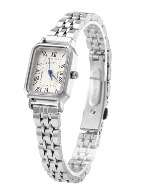 Strap Style: silver toned, bracelet style, stainless steel strap with a foldover
