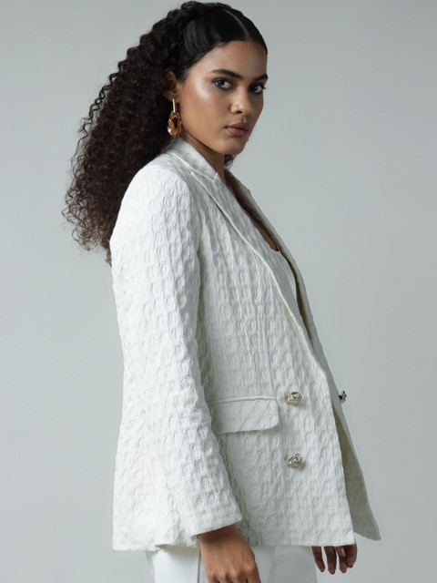 White textured regular-fit casual blazer, has a notched lapel, long sleeves, single-breasted with single button closure, two flap pockets and a double-vented back hem