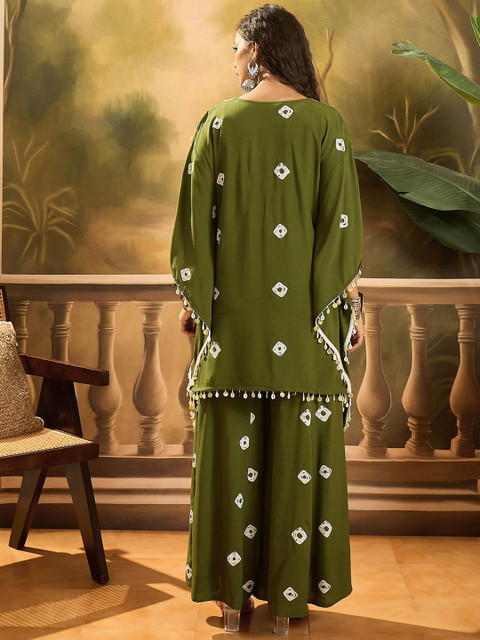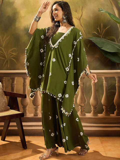 This kurta set consists of Kaftan top, Sharara