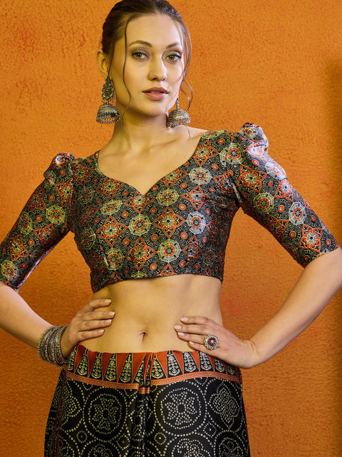 3 reviews for Sangria Block Printed Satin Saree With Blouse