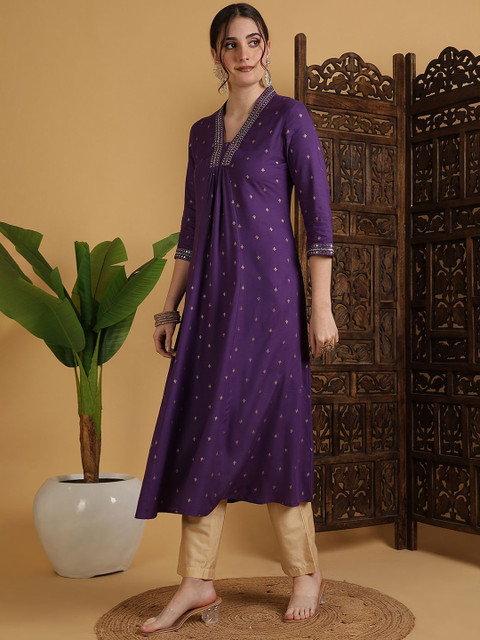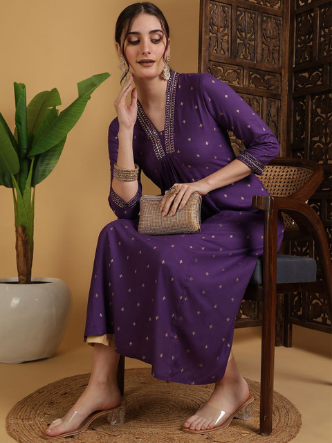 This Sangria kurti looks absolutely gorgeous! The fabric is soft and comfortable, and the golden detailing adds a classy festive touch. Perfect fit and elegant design — truly loved it!