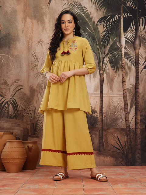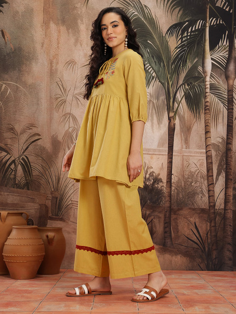 This co-Ord set consists of mustard tunic and a pair of palazzos: