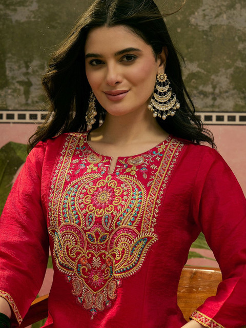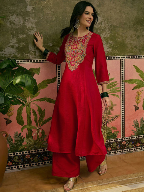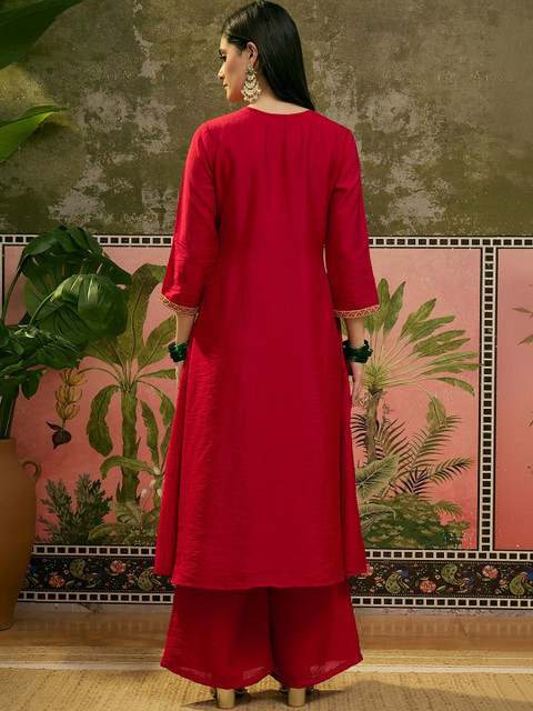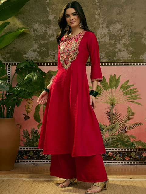 Sangria Embroidered Round Neck Kurta & Palazzos