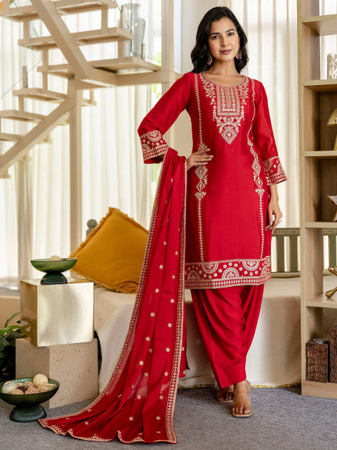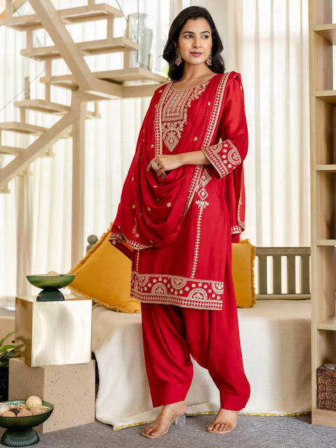 This kurta set consists of kurta, trousers and dupatta