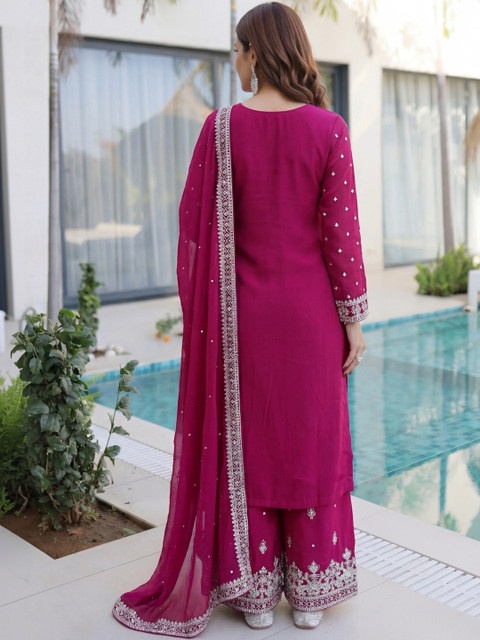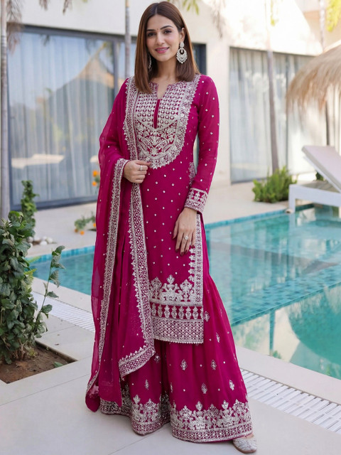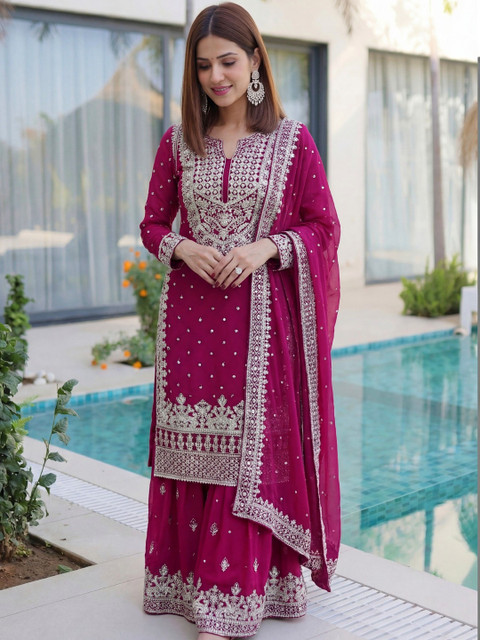 Sangaria Embroidered pink colour round neck kurta set with sharara nd duppatta is awsm , fabric quality is awsm , fit is awsm