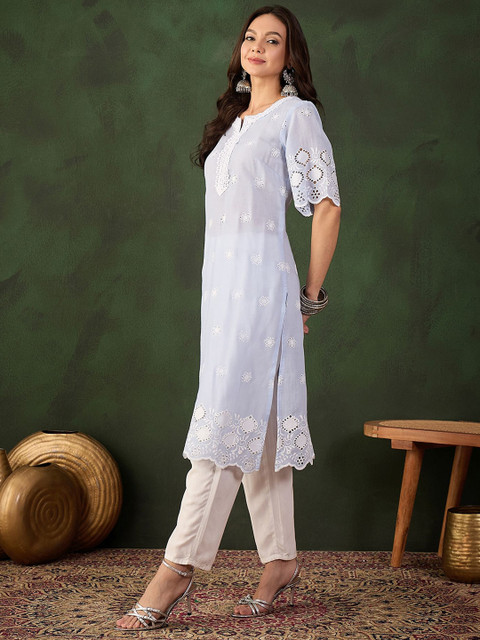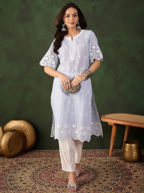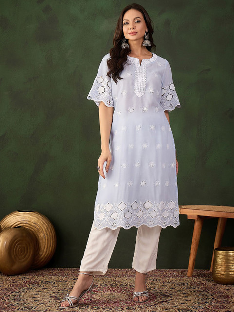 - Blue & off-white kurta
