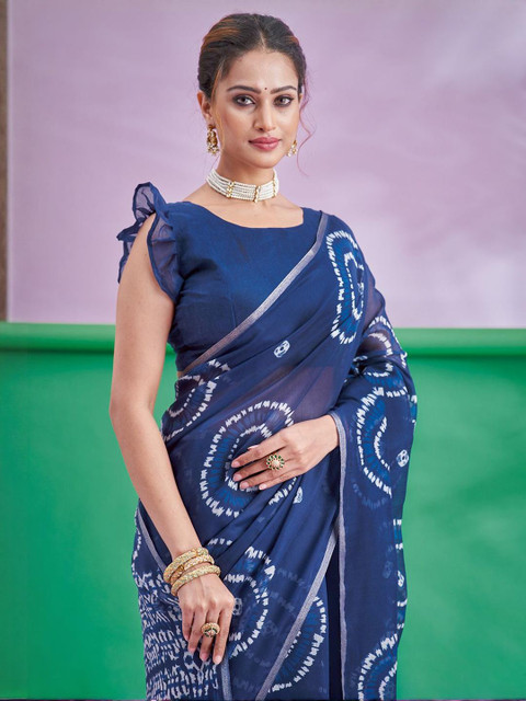Navy blue & white saree