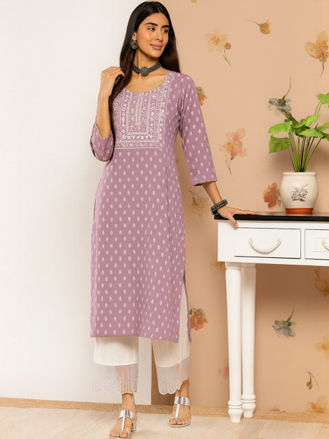 3 reviews for Sangria Ethnic Motifs Printed Pure Cotton Straight Kurtas