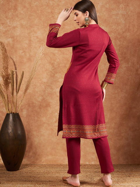3 reviews for Sangria Ethnic Motifs Woven Design Winter Kurta & Trousers