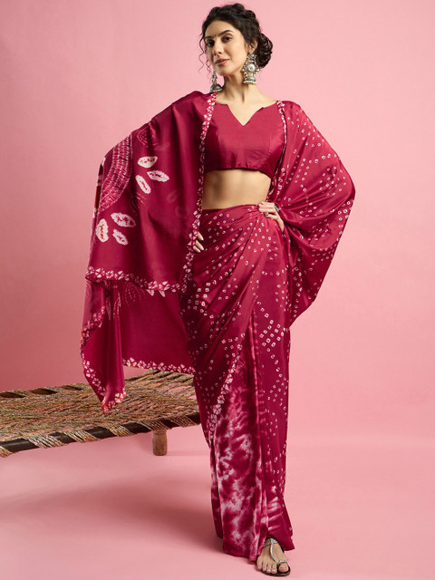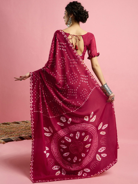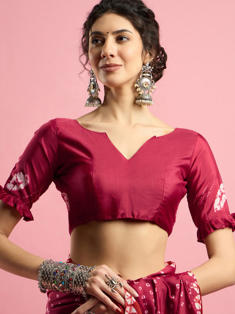 Sangria Ethnic Printed Bandhani Saree With Blouse Piece