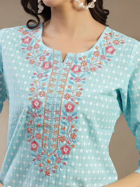 The fabric is amazing as I believe it is pure cotton and the embroidery is beautiful. It is very comfortable, Go for it