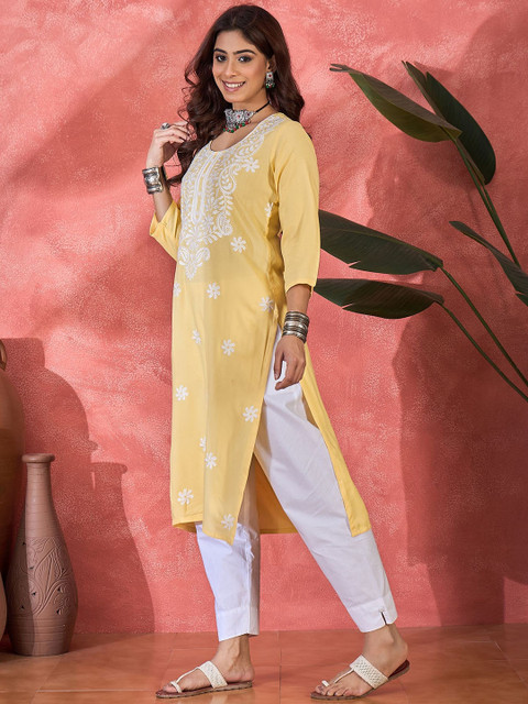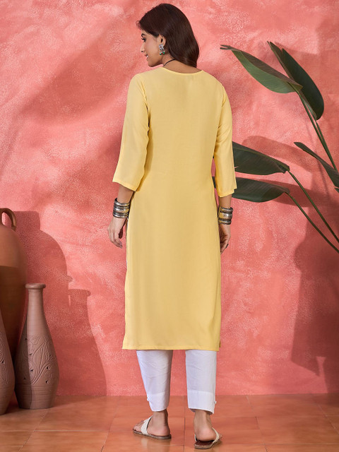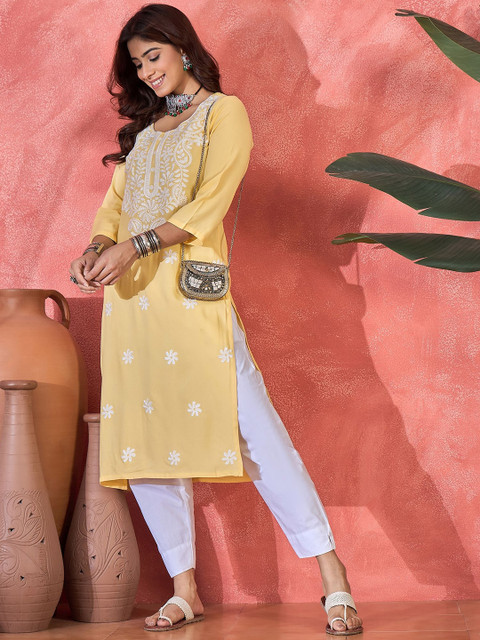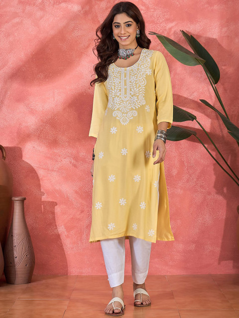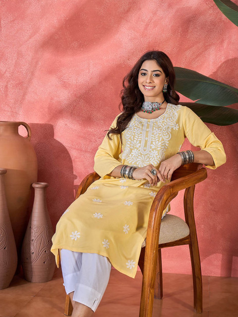 3 reviews for Sangria Floral Embroidered Round Neck Straight Kurta