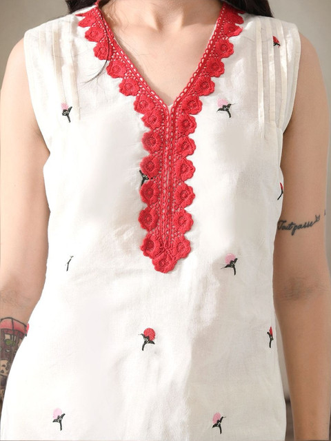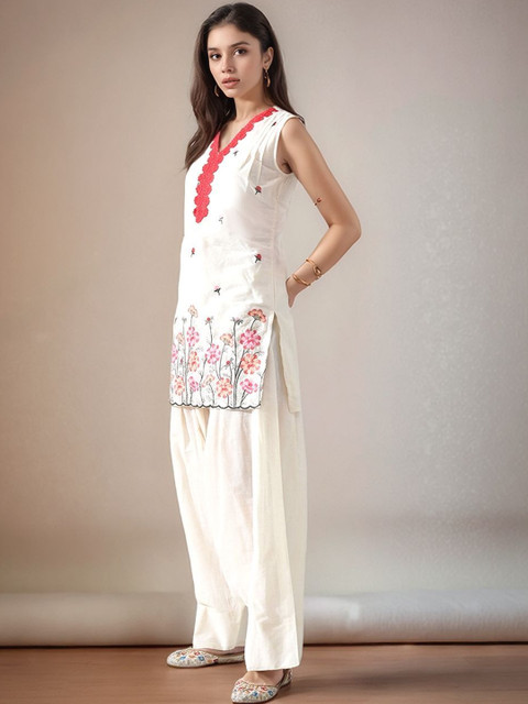 Off white, red and pink embroidered Kurta with Patiala