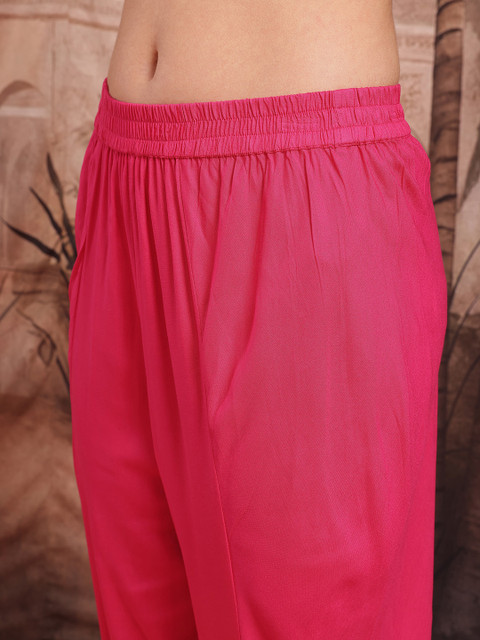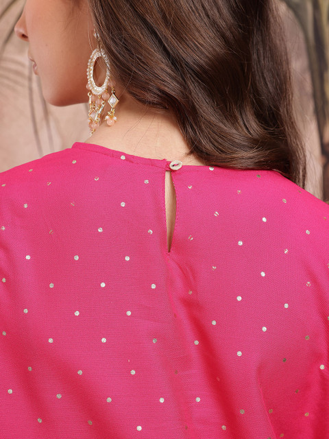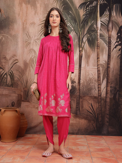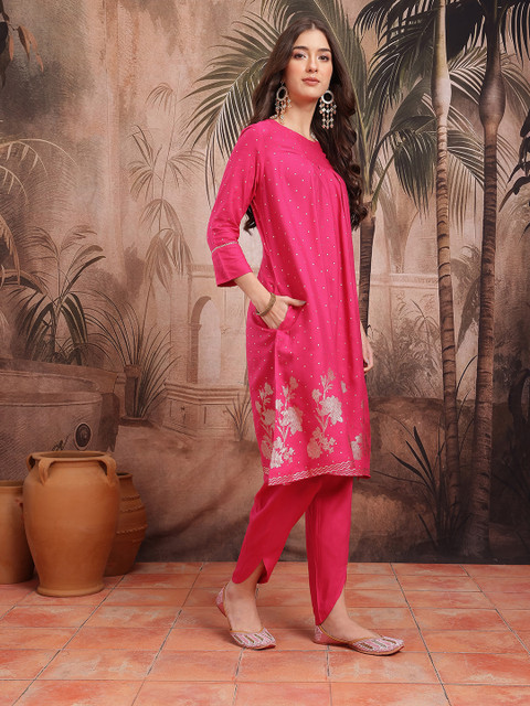 Fuchsia pink and gold-toned printed Kurta with Dhoti Pants