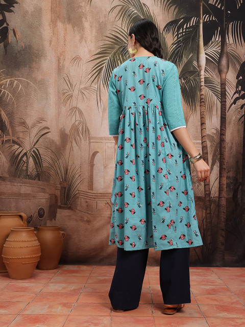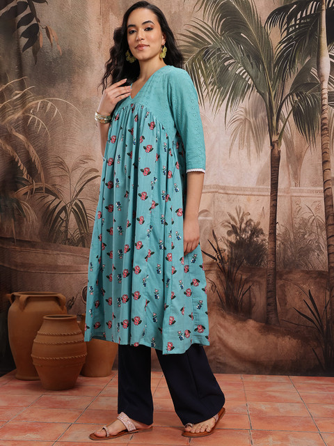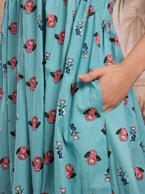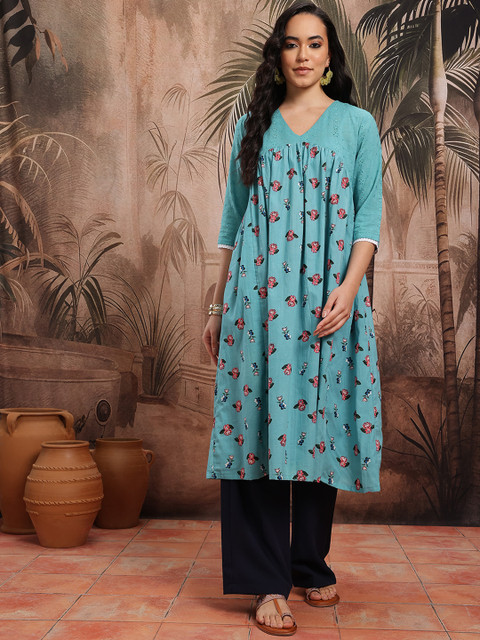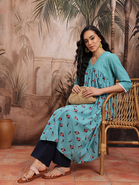 Unique colour with blooming floral prints, this kurta will fit you just right. Pair it with flats and subtle jewellery for an elegant summer look.