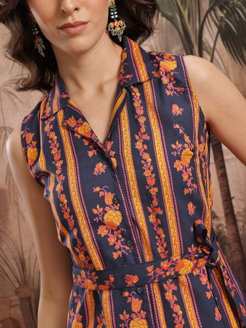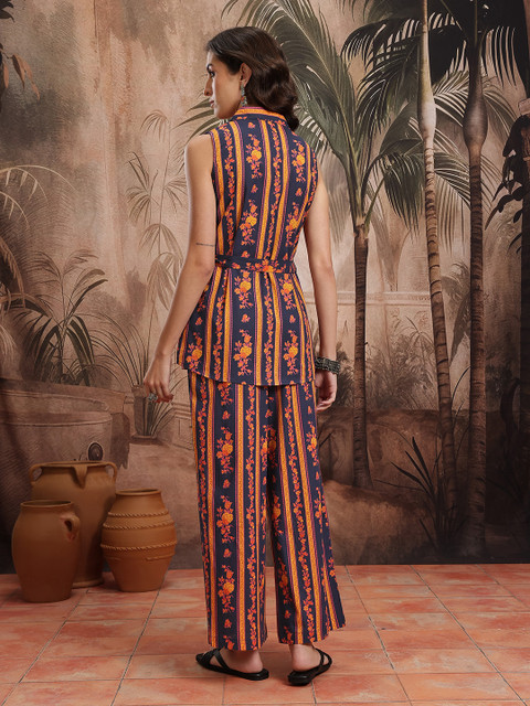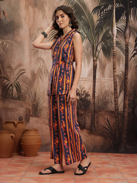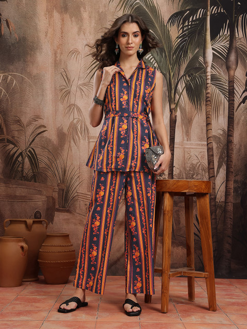 Unique colour with blooming floral prints, this co-ords will fit you just right. Pair it with flats and subtle jewellery for an elegant summer look.