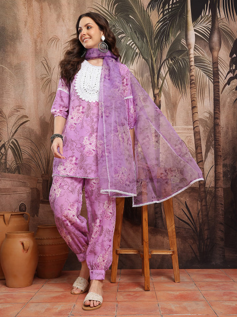 Lavender printed Kurta with Salwar with dupatta