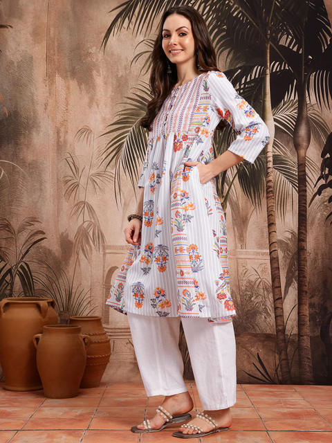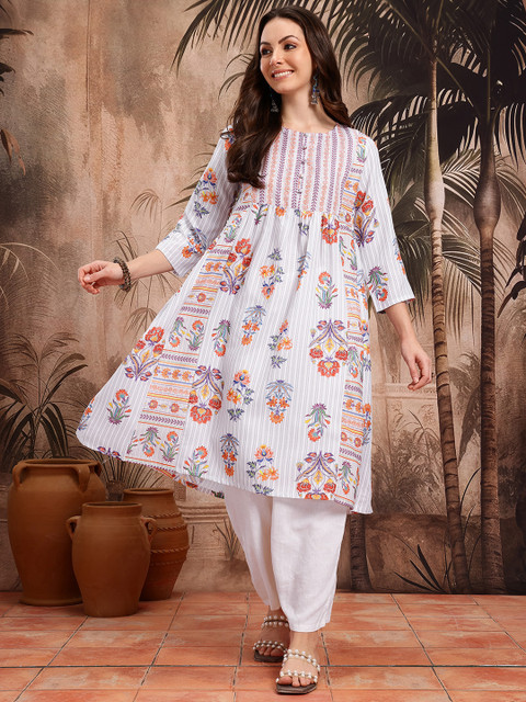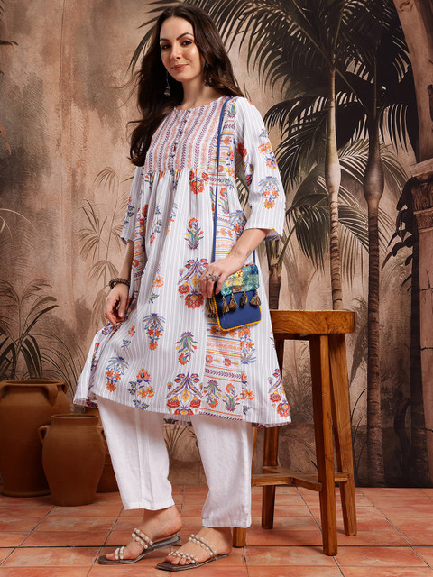 3 reviews for Sangria Floral Printed Gathered A-Line Kurta