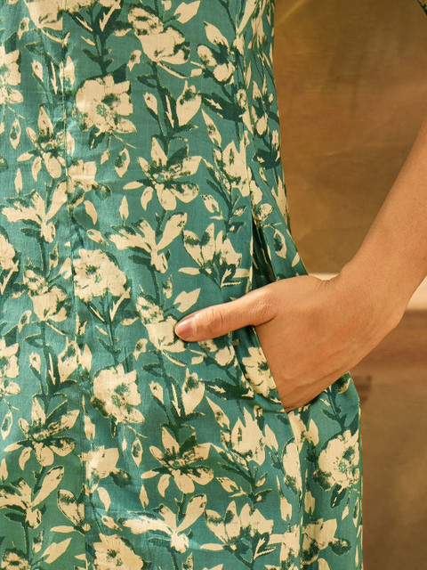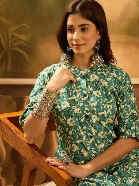 - Green & cream-coloured kurta