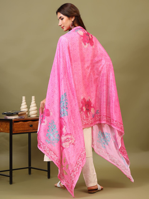 Sangria Floral Printed Pure Silk Dupatta