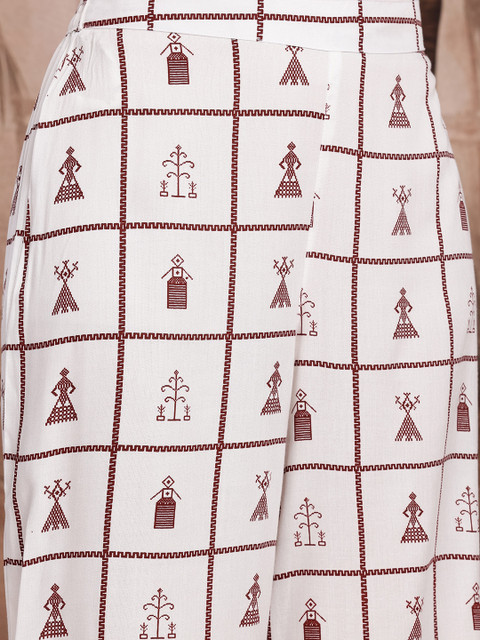 - White geometric tribal printed trousers