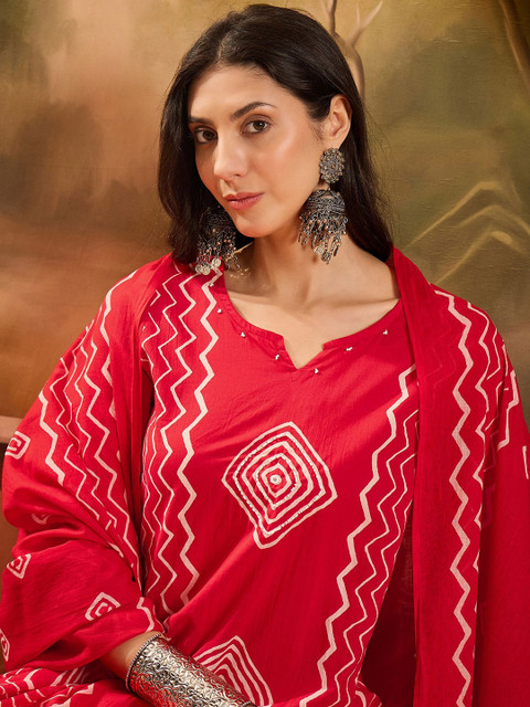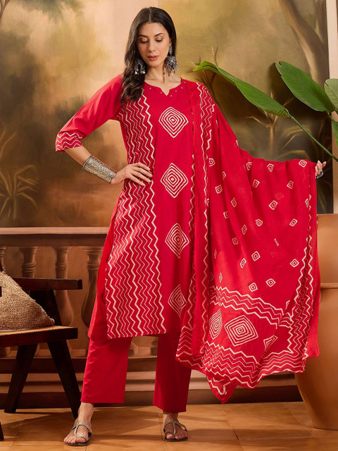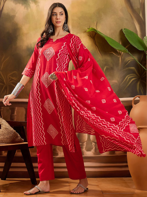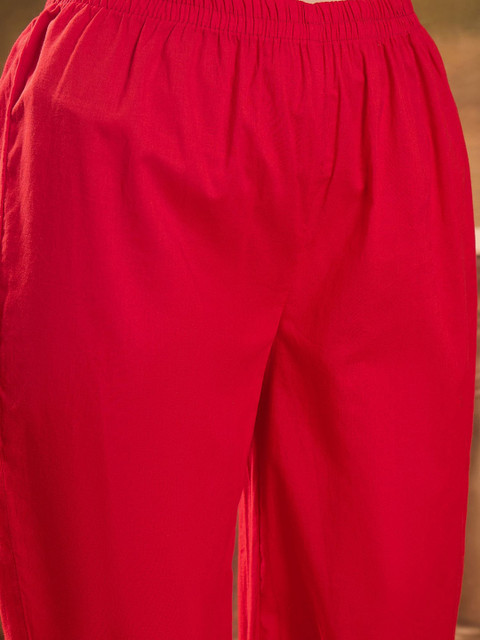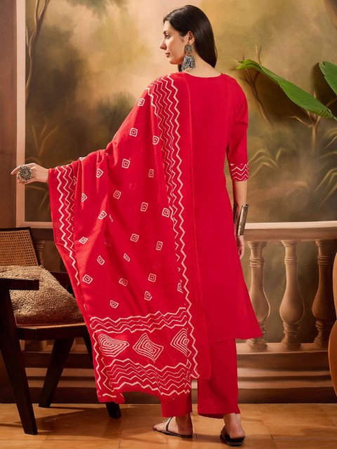 Red and white kurta with trousers & dupatta