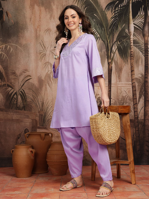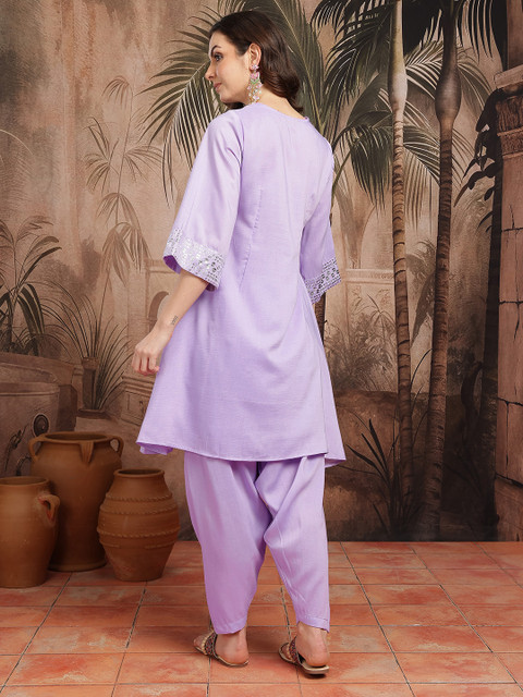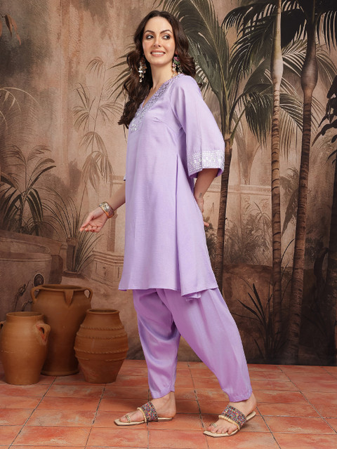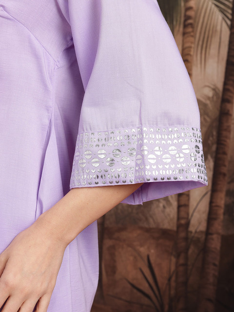 Lavender and silver-toned geometric printed Kurta with Trousers