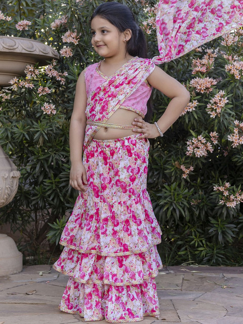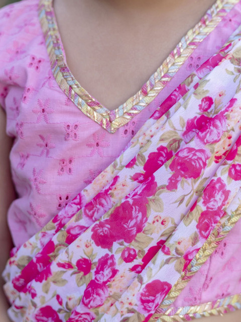 - Pink and white saree