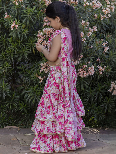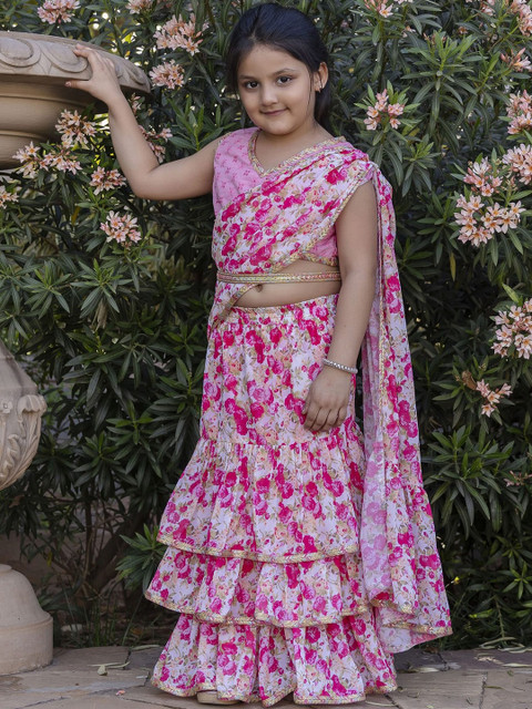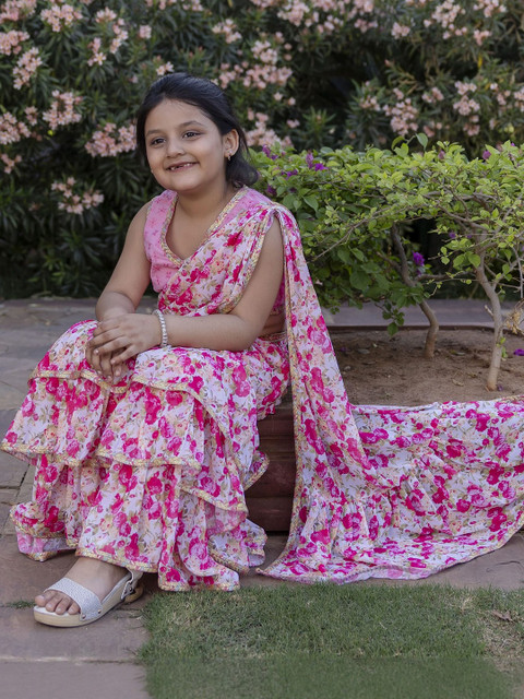 - Floral printed saree with embellished border