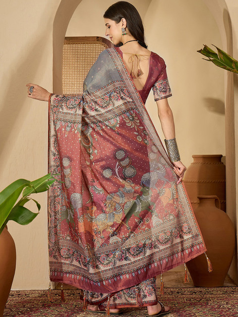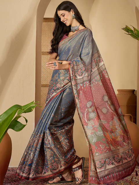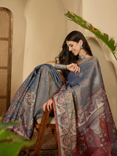 1 review for Sangria Grey Pure Linen Printed Sarees