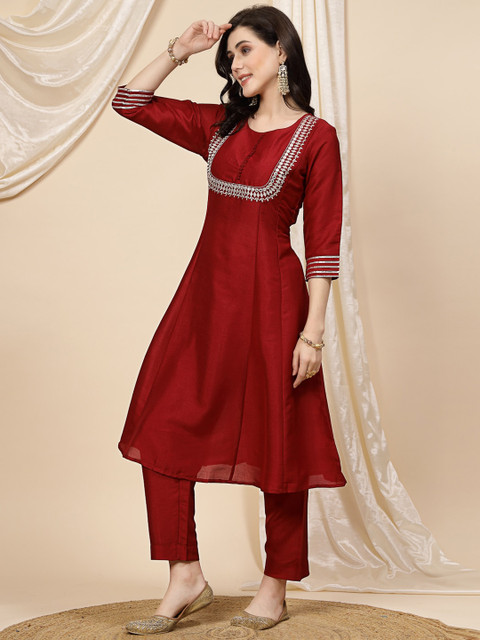 3 reviews for Sangria Maroon Mirror Work Embroidered Anarkali Kurta With Trouser & Dupatta