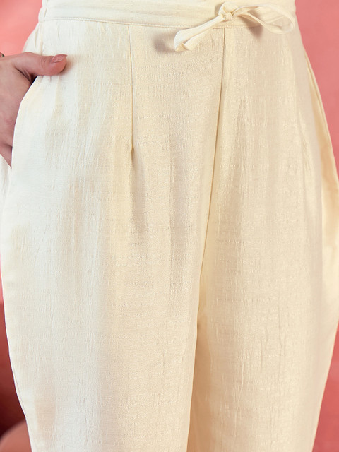 Off white, gold-toned and yellow embroidered kurta with trouser and dupatta