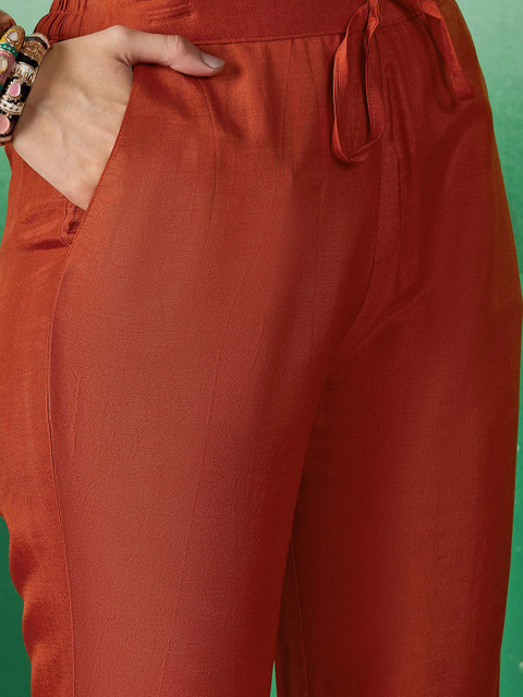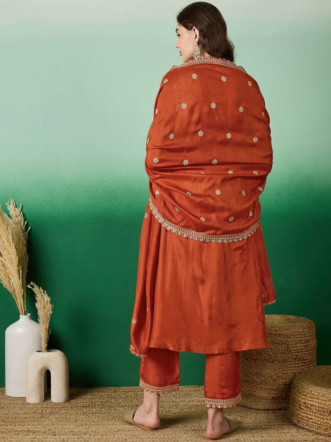 This beautiful orange floral Anarkali kurta is such a perfect festive and casual wear option. The floral print looks vibrant and eye-catching, while the flare gives a very flowy and elegant look. The fabric looks lightweight and comfortable, making it suitable for both daytime outings and festive occasions. The neckline detailing adds a touch of grace, neck is little bit deep. Definitely a budget-friendly yet stylish pick that gives a premium look