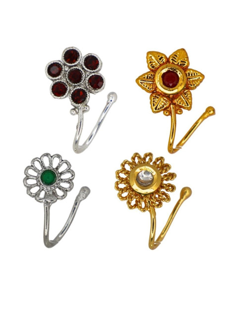 Pack of 4 Silver & Gold-Plated Cubic Zirconia Stud Nosepin, clip-on closure