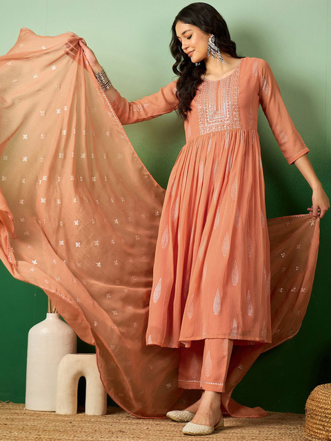 The peach shade is very soothing and looks premium. Fabric quality is good and comfortable for long wear. Embroidery is well done and gives a festive yet subtle look. Fits perfectly and looks flattering. Happy with the purchase 💖