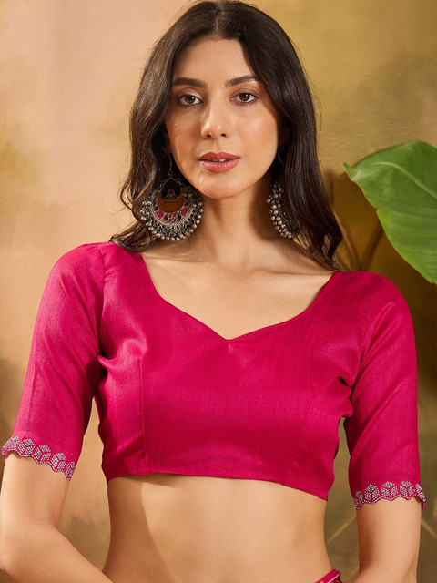 - The saree comes with an unstitched blouse piece