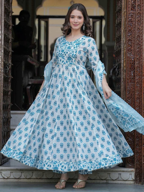 This kurta set consists of kurta trousers and dupatta