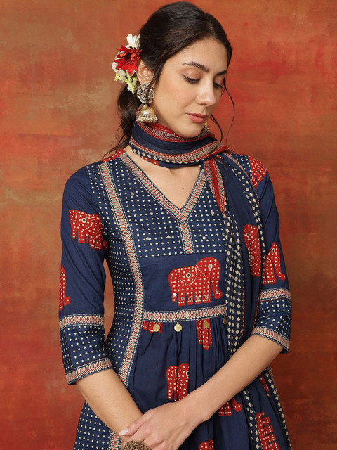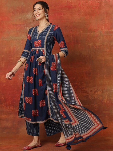 This brown kurta set by Sangria has a beautiful ethnic touch with its traditional elephant print and motifs. Made from pure cotton, it’s soft, breathable, and ideal for daily or festive wear. This kurta set comes with 2 more beautiful shade. Must buy product with perfect fitting and quality.❤️