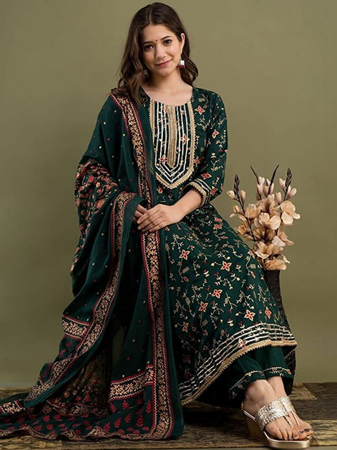 This kurta set consists of kurta trousers and dupatta