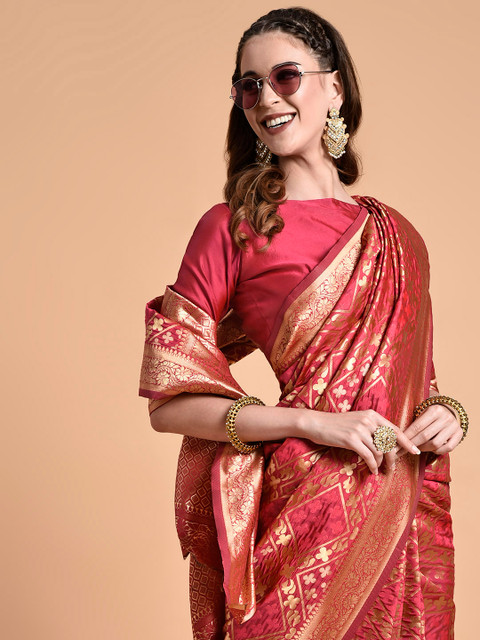 The blouse worn by the model might be for modelling purpose only. Check the image of the blouse piece to understand how the actual blouse piece looks like.