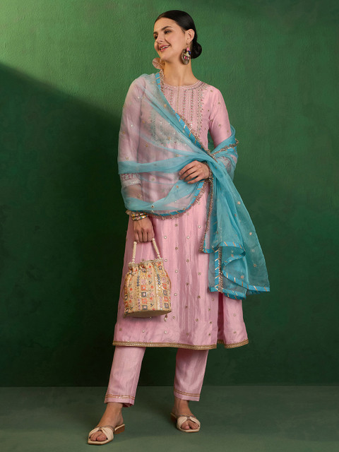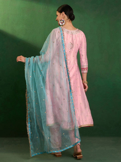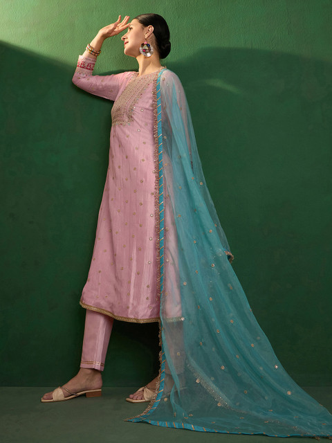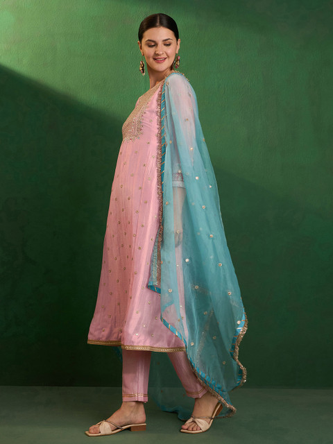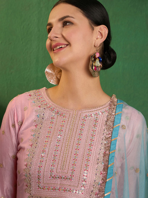 kurta looks lovely! The light pink color with delicate embroidery gives it a soft, feminine touch, and the turquoise ( sky blue ) dupatta complements it beautifully. The combination of pastel colors is refreshing and suits you well. The embroidery detail adds a festive vibe, making it perfect for traditional occasions. The look overall is graceful and elegant.💕🩵