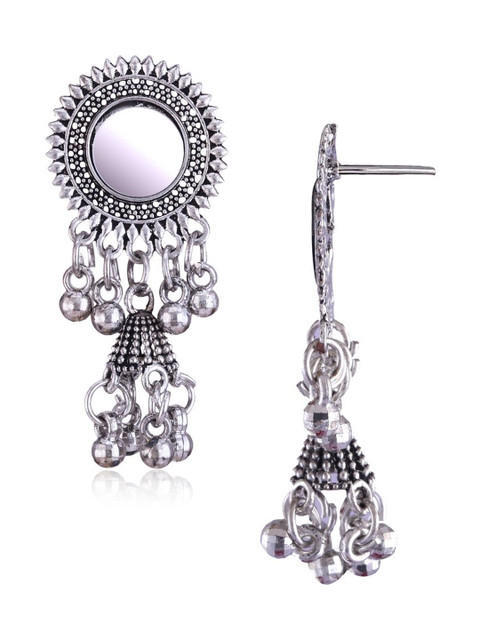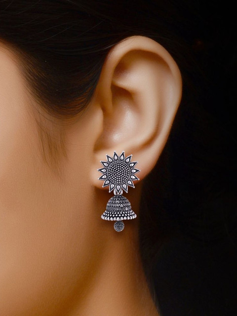 Sangria Traditional Oxidised Silver Jhumka Earrings for women | girls fashion jhumka meenakari oxidised kundans flower Temple South Indian Traditional Ear rings Set stylish Big Jhumki Combo pack of 6 earrings for women fashion jhumka oxidised Silver Earrings for women Combo chandbali pearl chandbali stylish jhumkas traditional Earrings For girls South indian traditional Ear Rings Peacock stone amaerican diamond ad cz earing