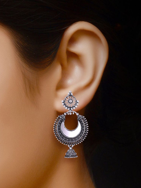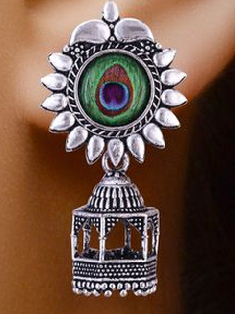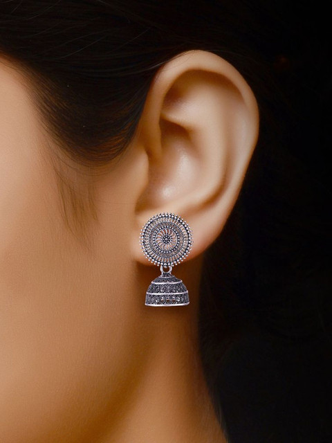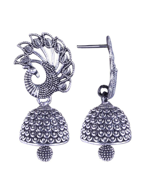 Sangria Traditional Oxidised Silver Jhumka Earrings for women | girls fashion jhumka meenakari oxidised kundans flower Temple South Indian Traditional Ear rings Set stylish Big Jhumki Combo pack of 6 earrings for women fashion jhumka oxidised Silver Earrings for women Combo chandbali pearl chandbali stylish jhumkas traditional Earrings For girls South indian traditional Ear Rings Peacock stone amaerican diamond ad cz earing